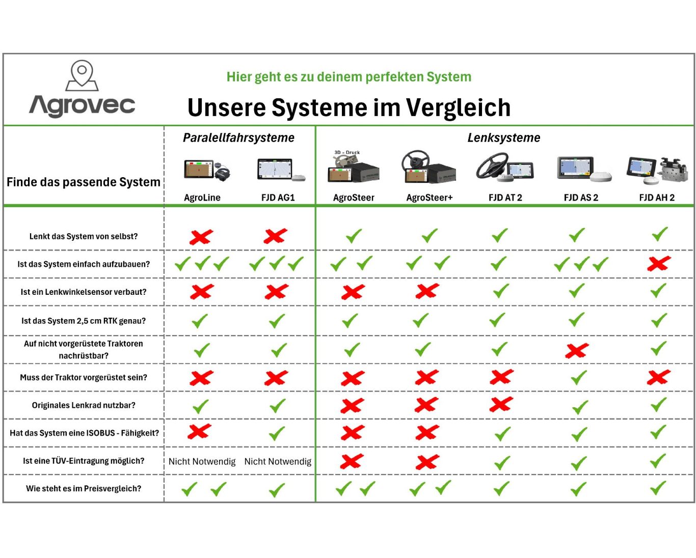 So individuell wie dein Betrieb: von visuelle Fahrhilfen bis hydraulische Lenksysteme – Agrovec macht es möglich.